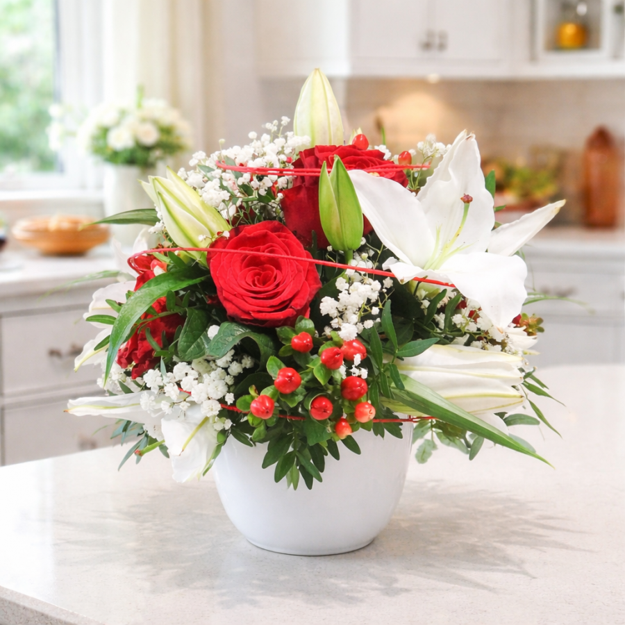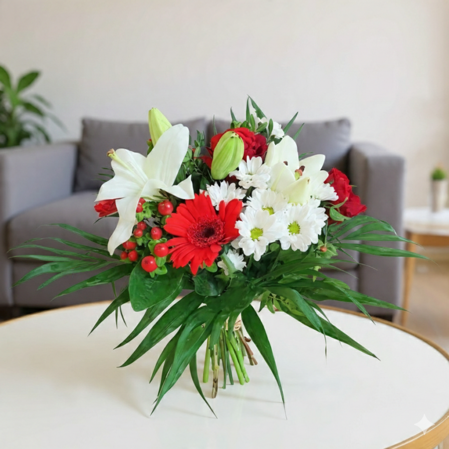 Nos bouquets et compositions sont réalisés le jour de la livraison dans notre atelier par nos fleuristes pour garantir les fleurs les plus fraîches possible. Votre commande sera accompagnée d’un message que vous pourrez renseigner au moment où vous passerez votre commande.