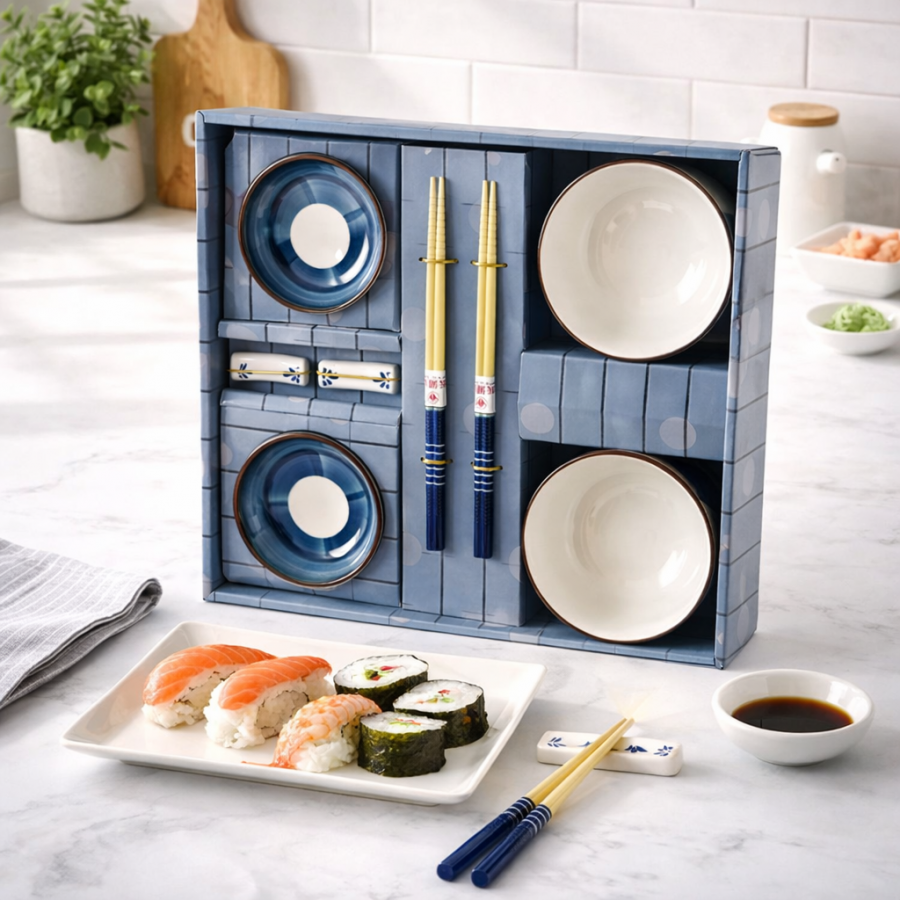 Set à Sushi Japonais 8 pièces en Porcelaine et Bambou
