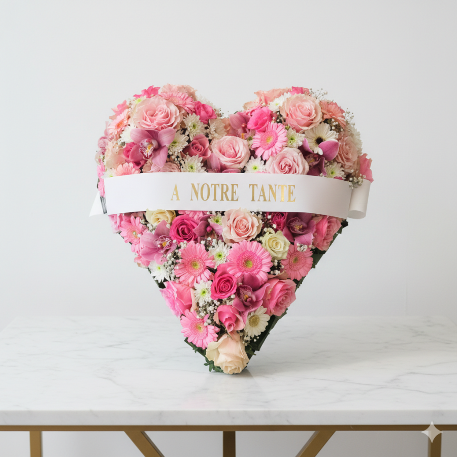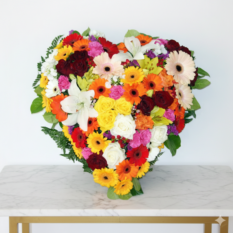 CŒUR DE FLEURS DEUIL MULTICOLORE