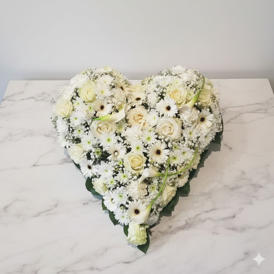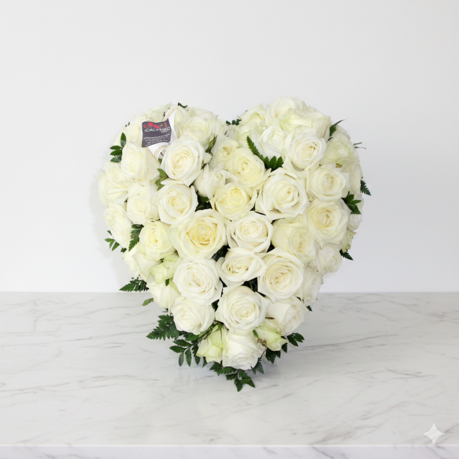 CŒUR DE FLEURS DEUIL ROSES BLANCHES