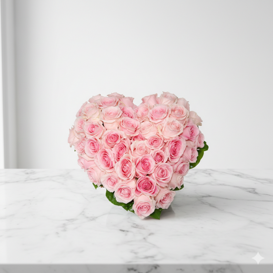 Cliquez ici pour découvrir les villes que nous desservons.Taille unique, Cœur d’un diamètre d’environ 40 cm composé de 60 roses roses