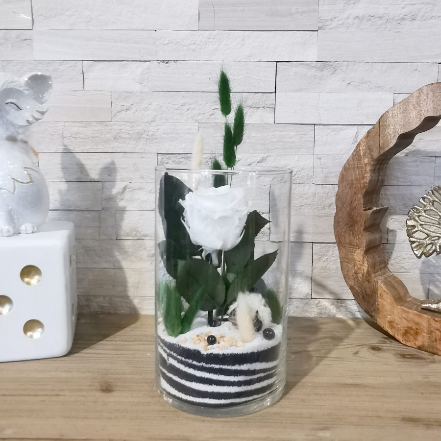 La rose selon sa couleur revêt une symbolique toute particulière. Rouge, elle incarne l’amour et la passion, blanche, la pureté, rose, l’amitié et la tendresse. Lovée dans un vase, protégée précieusement par une cloche ou confortablement installée dans une boîte, elle constitue un présent unique et de longue durée. Le processus permettant de stabiliser la rose au moment précis où elle est la plus belle a fait ses preuves ; Il permet de la conserver en état près de 4 ans ! En jouant sur le langage des fleurs vous offrez ainsi un amour éternel ou une amitié inconditionnelle !