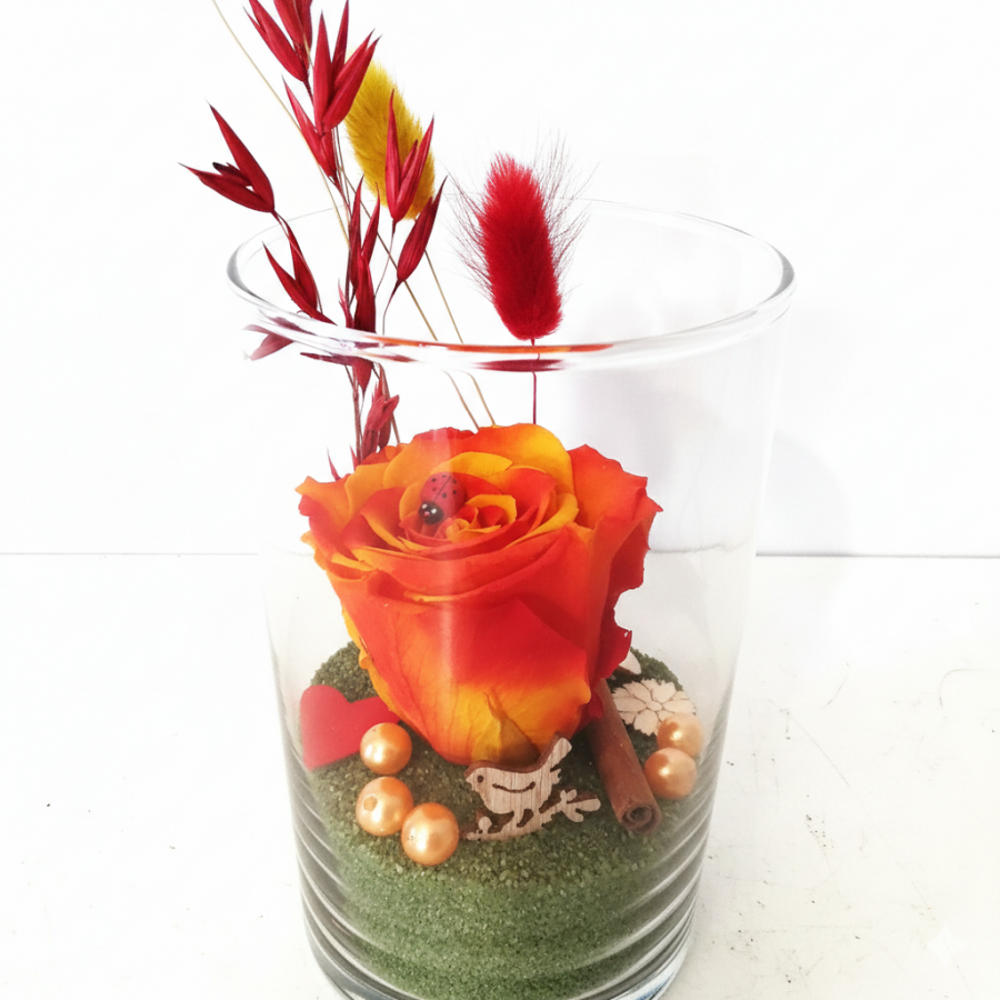 La rose selon sa couleur revêt une symbolique toute particulière. Rouge, elle incarne l’amour et la passion, blanche, la pureté, rose, l’amitié et la tendresse. Lovée dans un vase, protégée précieusement par une cloche ou confortablement installée dans une boîte, elle constitue un présent unique et de longue durée. Le processus permettant de stabiliser la rose au moment précis où elle est la plus belle a fait ses preuves ; Il permet de la conserver en état près de 4 ans ! En jouant sur le langage des fleurs vous offrez ainsi un amour éternel ou une amitié inconditionnelle !