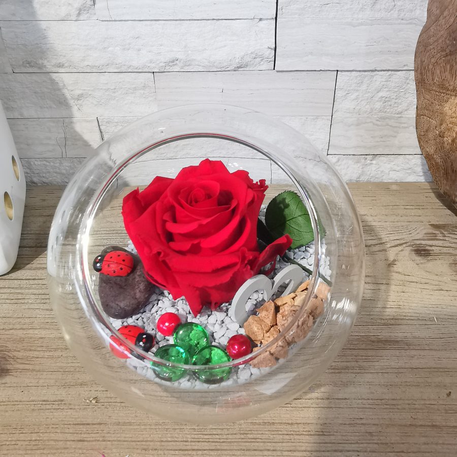 La rose selon sa couleur revêt une symbolique toute particulière. Rouge, elle incarne l’amour et la passion, blanche, la pureté, rose, l’amitié et la tendresse. Lovée dans un vase, protégée précieusement par une cloche ou confortablement installée dans une boîte, elle constitue un présent unique et de longue durée. Le processus permettant de stabiliser la rose au moment précis où elle est la plus belle a fait ses preuves ; Il permet de la conserver en état près de 4 ans ! En jouant sur le langage des fleurs vous offrez ainsi un amour éternel ou une amitié inconditionnelle !