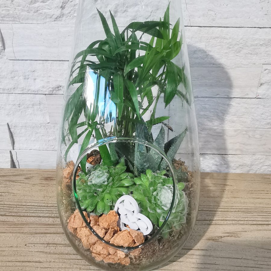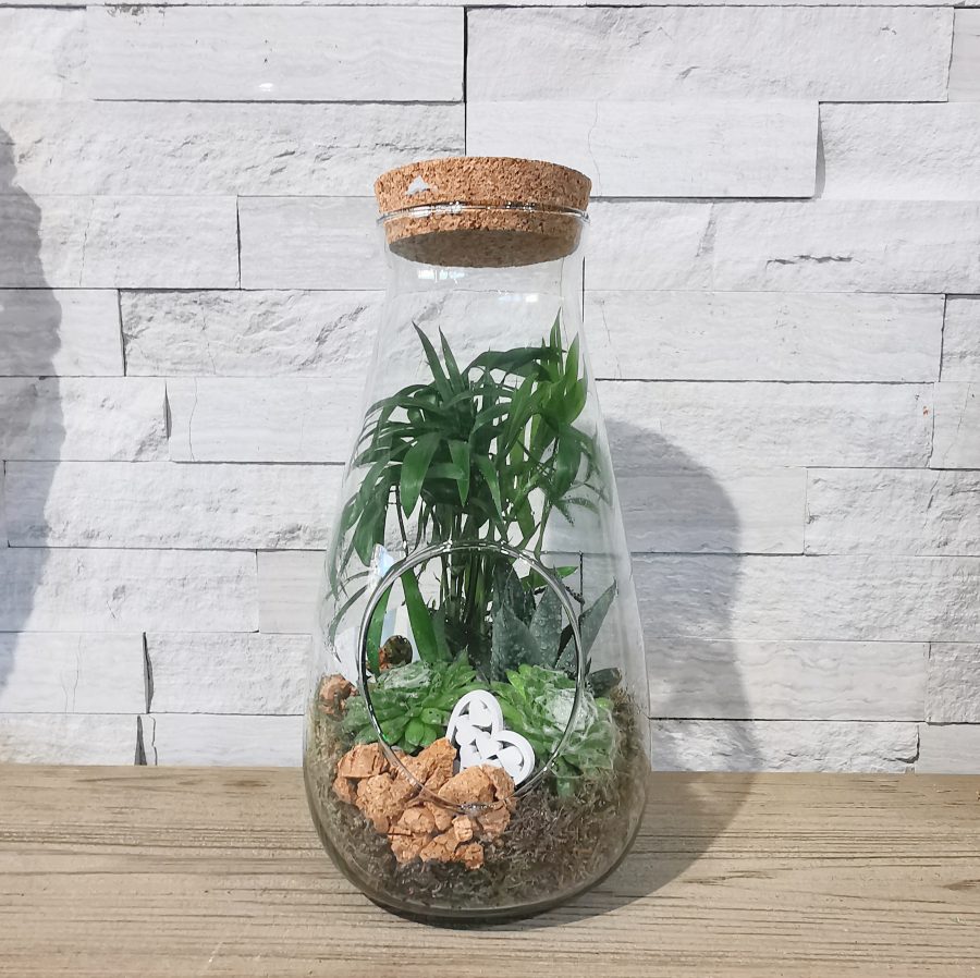Véritable petit jardin de plantes grasses et/ou succulentes dans sa cage en verre, nos terrariums sont réalisés par nos soins dans notre atelier.