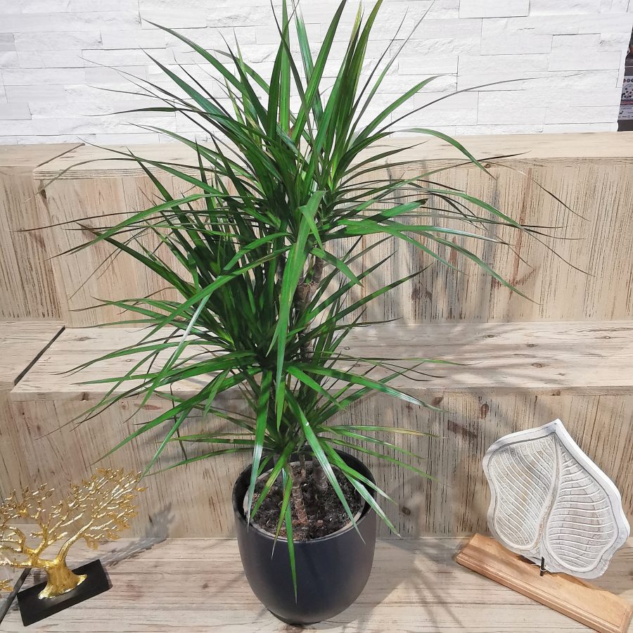 Le dracaena est une plante d’appartement tout en hauteur et dotée d’un ou de plusieurs troncs desquels sortent de superbes feuilles de couleur verte, jaune et dorée, avec parfois un peu de rose ou de rouge. Plusieurs variétés de feuilles existent : petites, fines et pointues ou au contraire larges et souples. Toutes ces sortes ont en commun d’être de très élégantes plantes qui s’adaptent à tous les intérieurs. Et elles ont toutes faciles à soigner. La plante stocke l’humidité dans son tronc et supporte ainsi qu’on oublie parfois de l’arroser. Sa forme rappelle le palmier et lui donne un aspect résolument exotique qui se combine à la perfection avec les plantes totems qui ont des feuilles plus petites.
