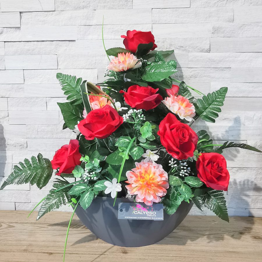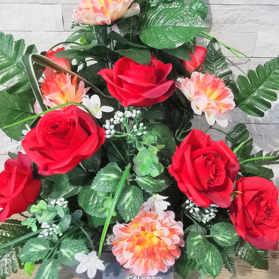 Imitation des fleurs naturelles, les fleurs artificielles sur notre site sont utilisées pour honorer un défunt lors d’une cérémonie ou tout simplement pour orner de façon permanente sa tombe. Leur grande résistance leur permet de les exposer aux intempéries tout en gardant leur éclat sur une très longue période.