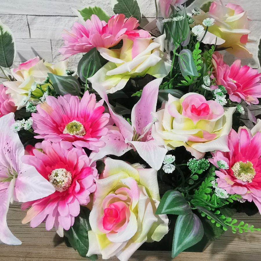 Imitation des fleurs naturelles, les fleurs artificielles sur notre site sont utilisées pour honorer un défunt lors d’une cérémonie ou tout simplement pour orner de façon permanente sa tombe. Leur grande résistance leur permet de les exposer aux intempéries tout en gardant leur éclat sur une très longue période.