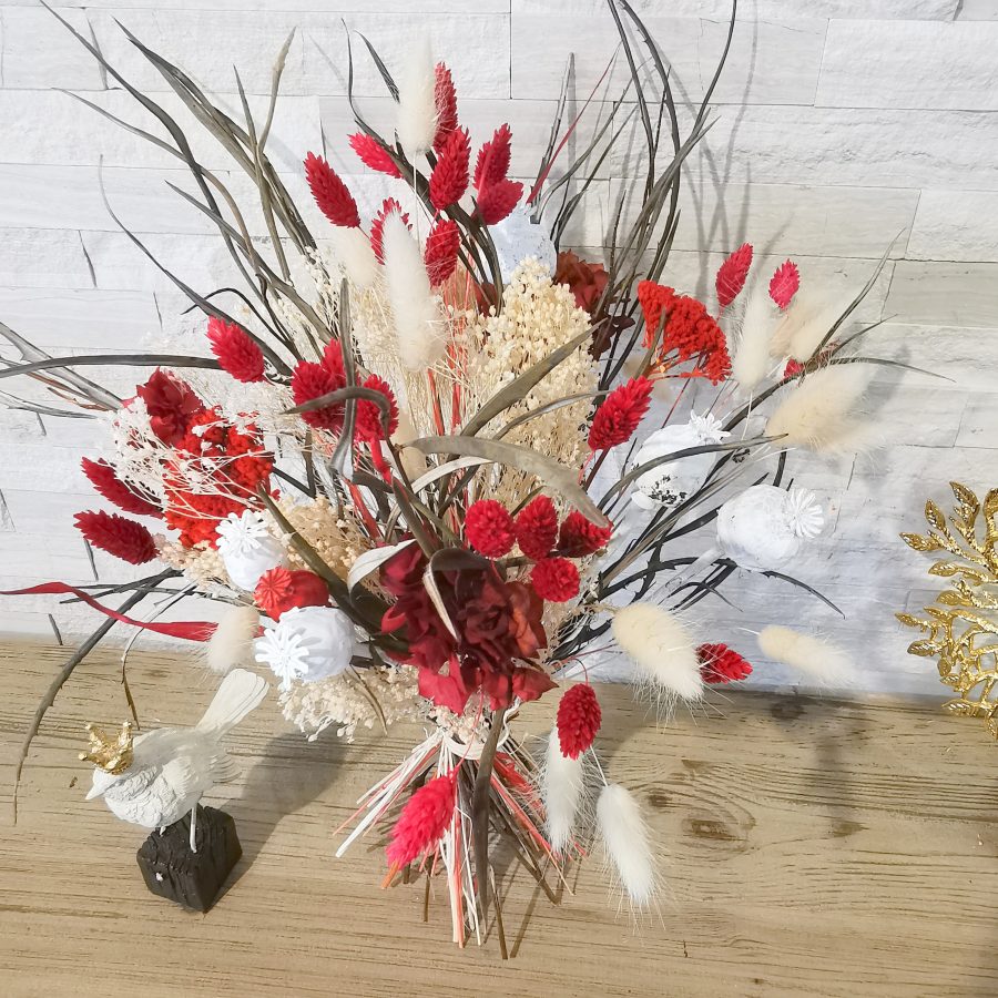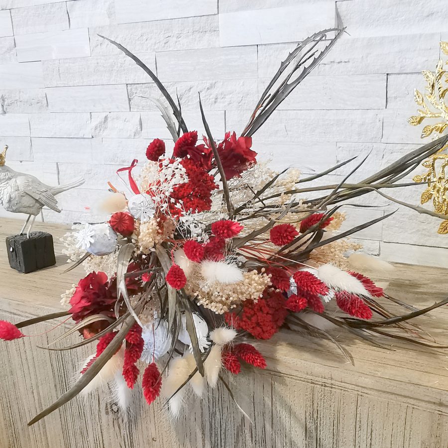Très tendance, les fleurs séchées font leur retour en force ces dernières années et pour cause ! De très longue durée en bouquets ou en composition, elles assurent la décoration sans besoin d’un contraignant entretien ! Texturées, colorées, leur charme n’est plus à prouver ! Chaque création est unique et fera donc l’objet de tous les soins de notre équipe de fleuristes pour agencer les végétaux tantôt de manière champêtre pour orner à merveille un intérieur classique ou pour accompagner une déco de style cocooning, tantôt de manière plus contemporaine ou graphique pour correspondre aux goûts plus marqués en matière de design.
