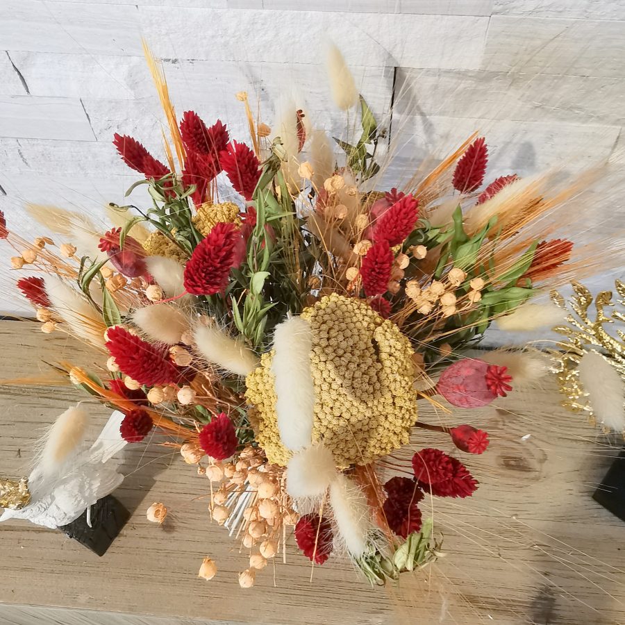 Très tendance, les fleurs séchées font leur retour en force ces dernières années et pour cause ! De très longue durée en bouquets ou en composition, elles assurent la décoration sans besoin d’un contraignant entretien ! Texturées, colorées, leur charme n’est plus à prouver ! Chaque création est unique et fera donc l’objet de tous les soins de notre équipe de fleuristes pour agencer les végétaux tantôt de manière champêtre pour orner à merveille un intérieur classique ou pour accompagner une déco de style cocooning, tantôt de manière plus contemporaine ou graphique pour correspondre aux goûts plus marqués en matière de design.