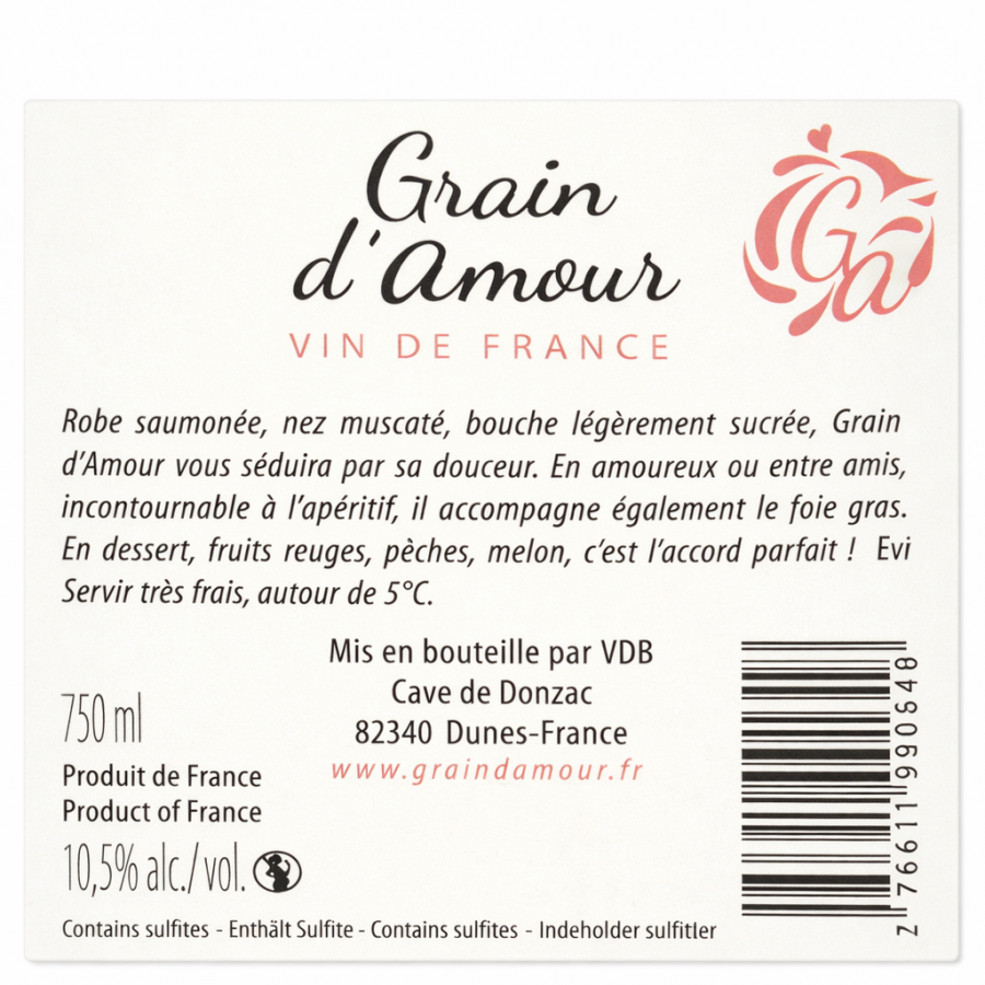 Vin Rosé VIN DE FRANCE ROSE DOUX GRAIN D’AMOUR