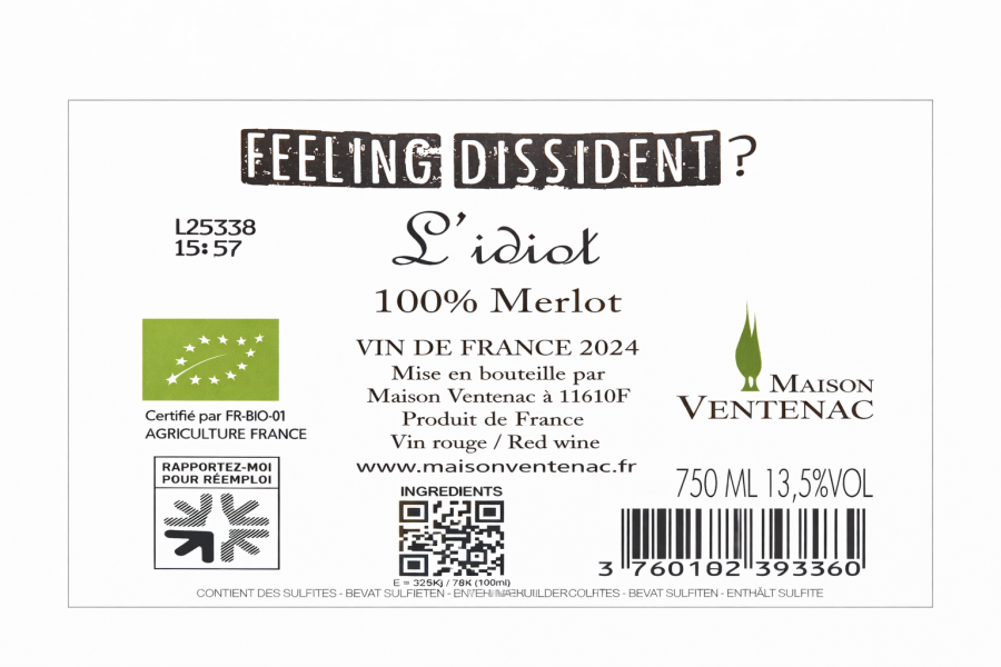 UGS : Vin Rouge VDF L'IDIOT ROUGE BIO 2024 MAISON VENTENAC Catégorie :
