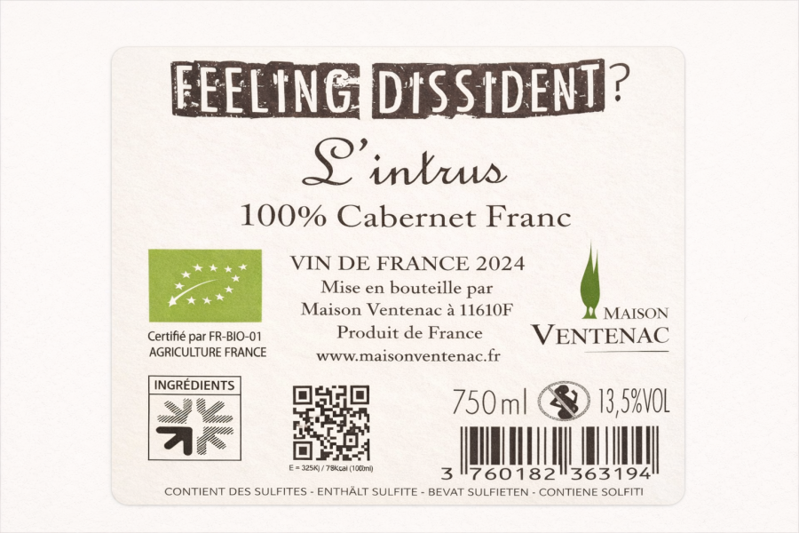 Vin Rouge VIN DE FRANCE ROUGE 2024 BIO L’INTRUS MAISON VENTENAC